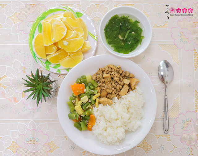 Tại Sakura Montessori, chúng tôi đã xây dựng thực đơn theo nguyên tắc phối hợp nhiều loại thực phẩm và các món ăn ít lặp lại trong tuần và trong tháng, để đa dạng hóa bữa ăn tránh nhàm chán cân đối giữa nguồn động vật và thực vật. Thông thường 1 ngày ăn đều có ít nhất 2-3 loại thực phẩm cung cấp chất đạm, 3-5 loại rau củ.
